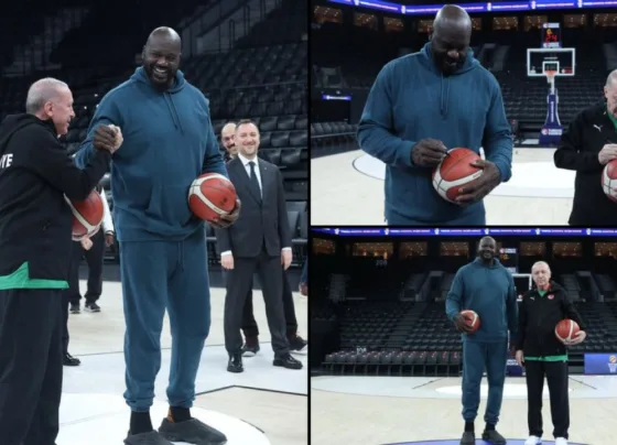Cumhurbaşkanı Recep Tayyip Erdoğan, Amerikalı ünlü basketbol efsanesi Shaquille O’Neal ile İstanbul’da bir ortaya geldi. Cumhurbaşkanı Erdoğan, basketbol toplarını imzaladıkları…